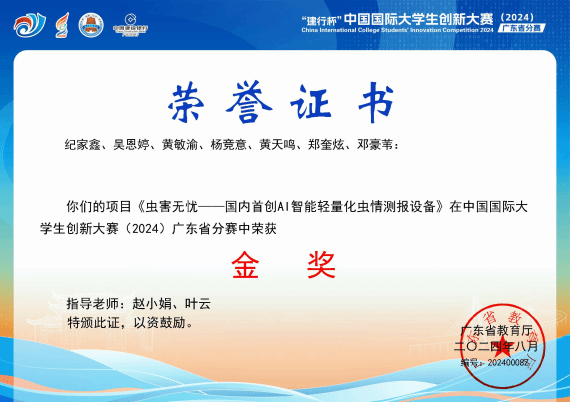 5.专注创新,专业提升:团队成员承办行业大赛,教师和学生在中国国际大学生创新大赛、“挑战杯”竞赛、广东省职业院校技能大赛、教师教学能力大赛及行业大赛中屡屡获奖,荣获2024中国国际大学生创新大赛国赛金奖等10余项。