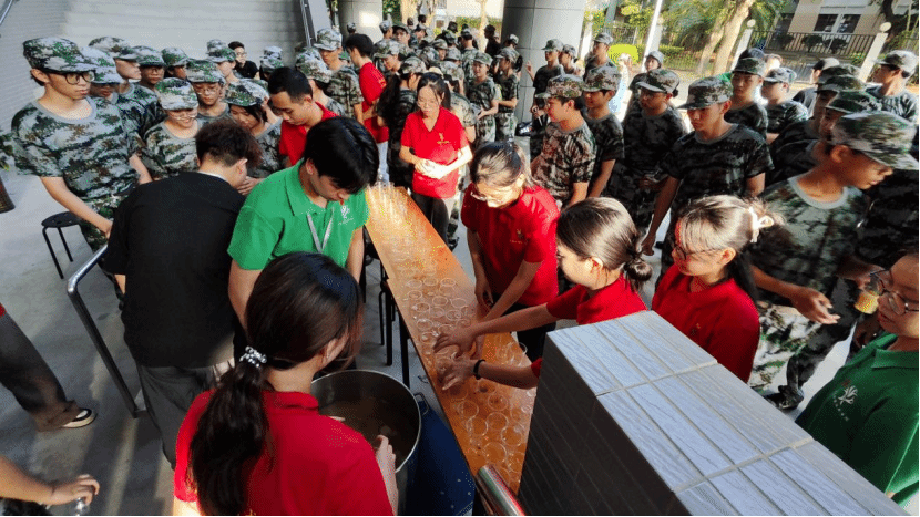 活动现场,学生党员精心准备,将熬制好的糖水从饭堂安全运送至学院学生军训现场,分发给紧张军训的新同学。党员们热情洋溢,与新生亲切交谈,亲手递上一杯杯糖水,以温情缓解军训的紧张;新生们笑容满面,连声道谢,品味入口的甘甜。