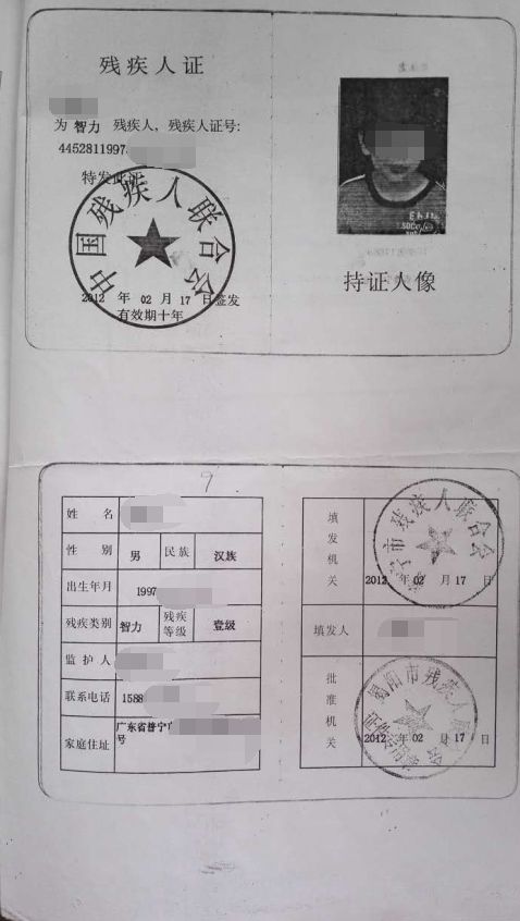 残疾指人的身体某部分或其生理功能上的缺陷。认定材料为中国残疾人联合会统一印制、由县残联核发的第二代残疾证(残疾人证)。