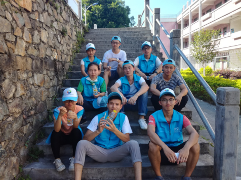 7月12日,生态环境技术学院建材粉刷队实践队员开始的进行他们的工作。