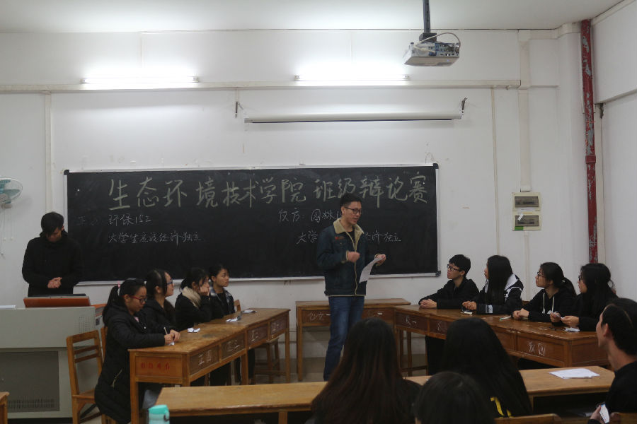 2016年11月27日晚,经过重重挑战,克服种种困难,由生态环境技术学院举办的第五届班级辩论赛在1329和1331课室迎来了四强争夺赛。辩手们蓄势待发,冲劲十足。