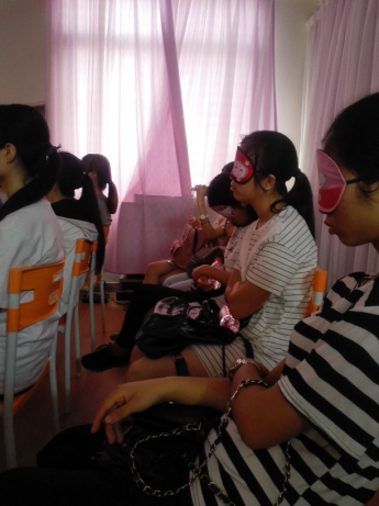 首先,志愿者们来到凤池社区,这里聚集了许多视障人士,志愿者们帮助工作人员带一些视障人士来到播放室,然后与他们简单交谈,了解他们的日常生活。在这期间,工作人员给每个志愿者发派一个眼罩,并要求志愿者们在观看电影时必须带上眼罩。本次播放电影是《时光神偷》,播放过程中有三位工作人员轮流口述电影,帮助视障人士更好了解电影。