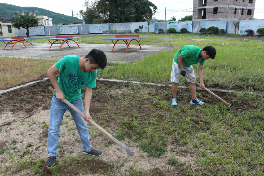 7月13日上午9点,在一切准备就绪后,环境系园林小分队在韶关市翁源县龙仙镇中心小学,开始了他们的第一天实践活动。
