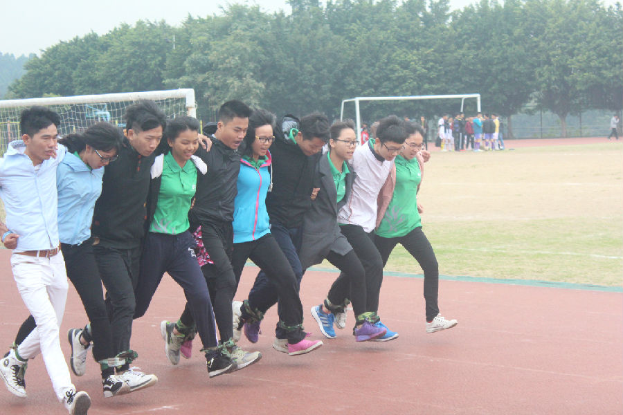 为了加强同学们的凝聚力和向心力,发动和引导更多学生自觉参加各种体育健身活动,2015年11月28日上午9:30,体育文化节之十人十一足比赛在田径场举行,每个院系都派出最强的队伍。
