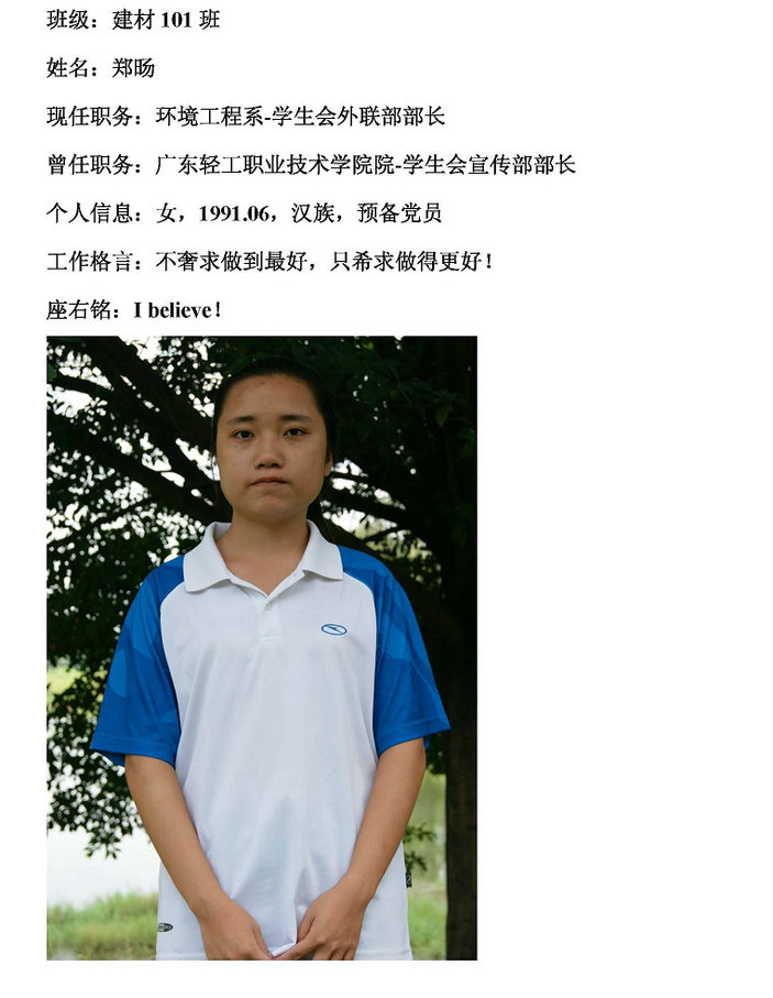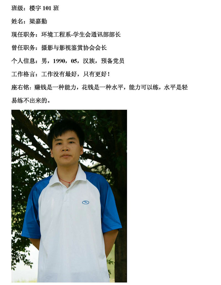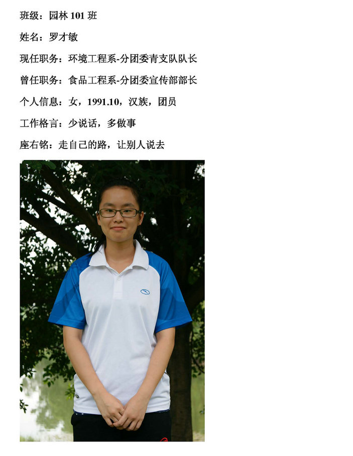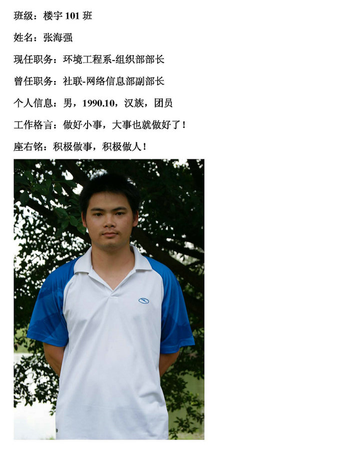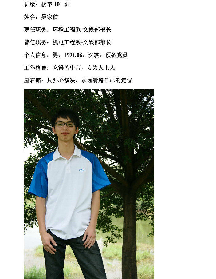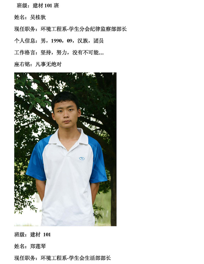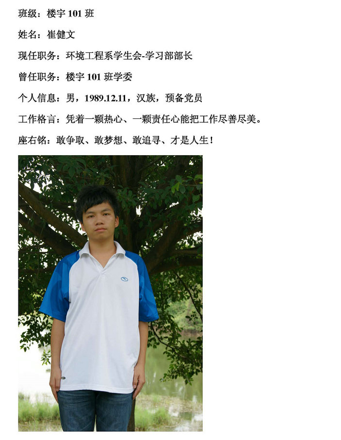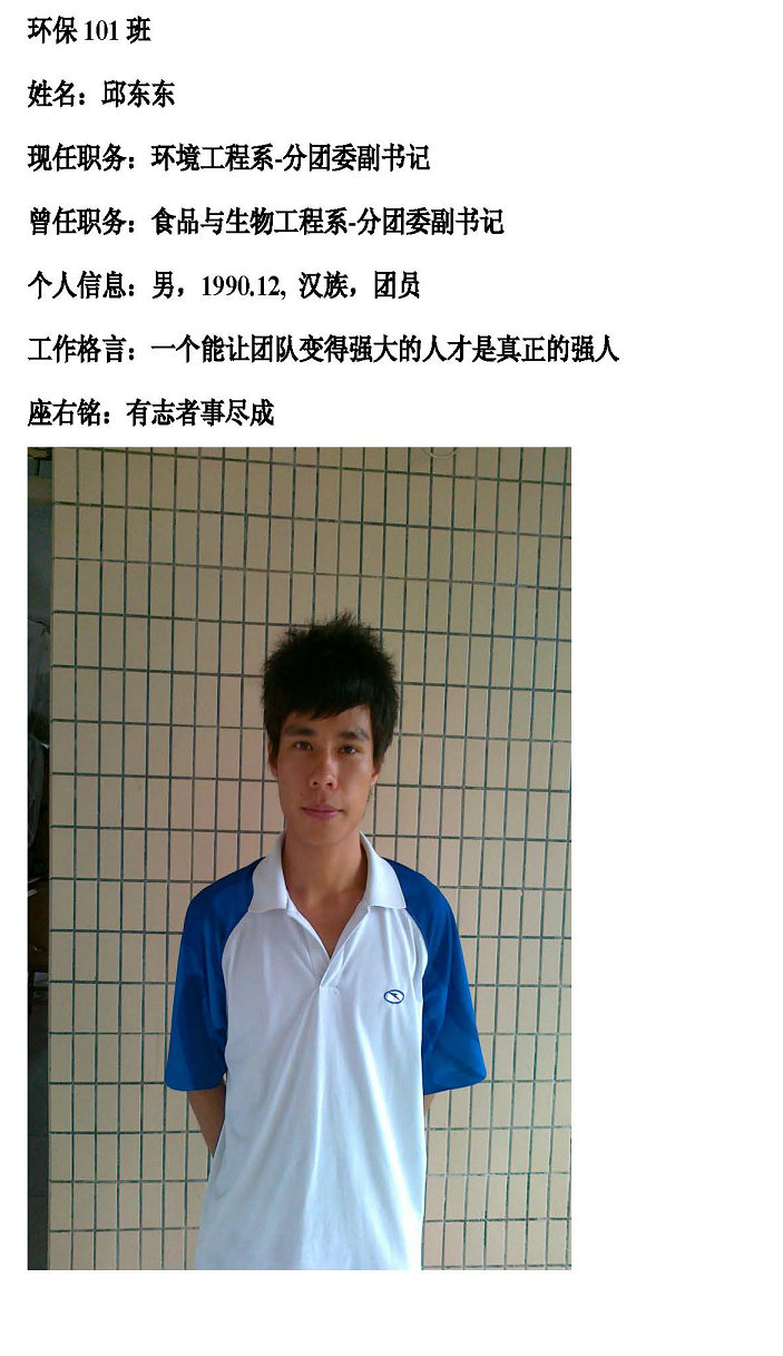 环境工程系2012/2013学年2010级分团委委员、学生分会委员简介