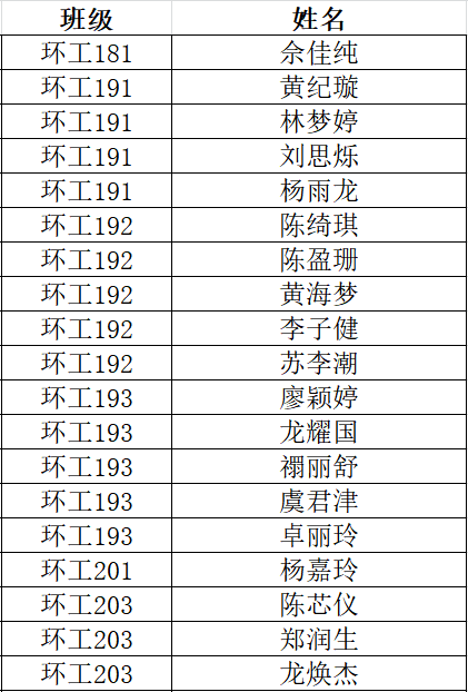 三、生态环境技术学院优秀共青团员