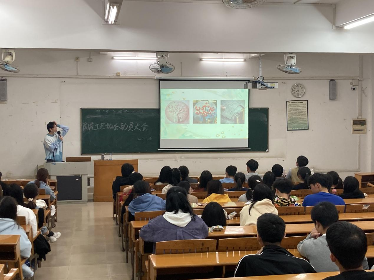 为使我院新一届陶瓷工艺协会的成员更好地了解协会的活动和学习方式,陶瓷工艺协会于11月26日晚上19:30在2110教室举办了新一届陶瓷工艺协会动员大会,参加会议的有指导老师张泽敏和周世宽、协会干部以及干事和会员。