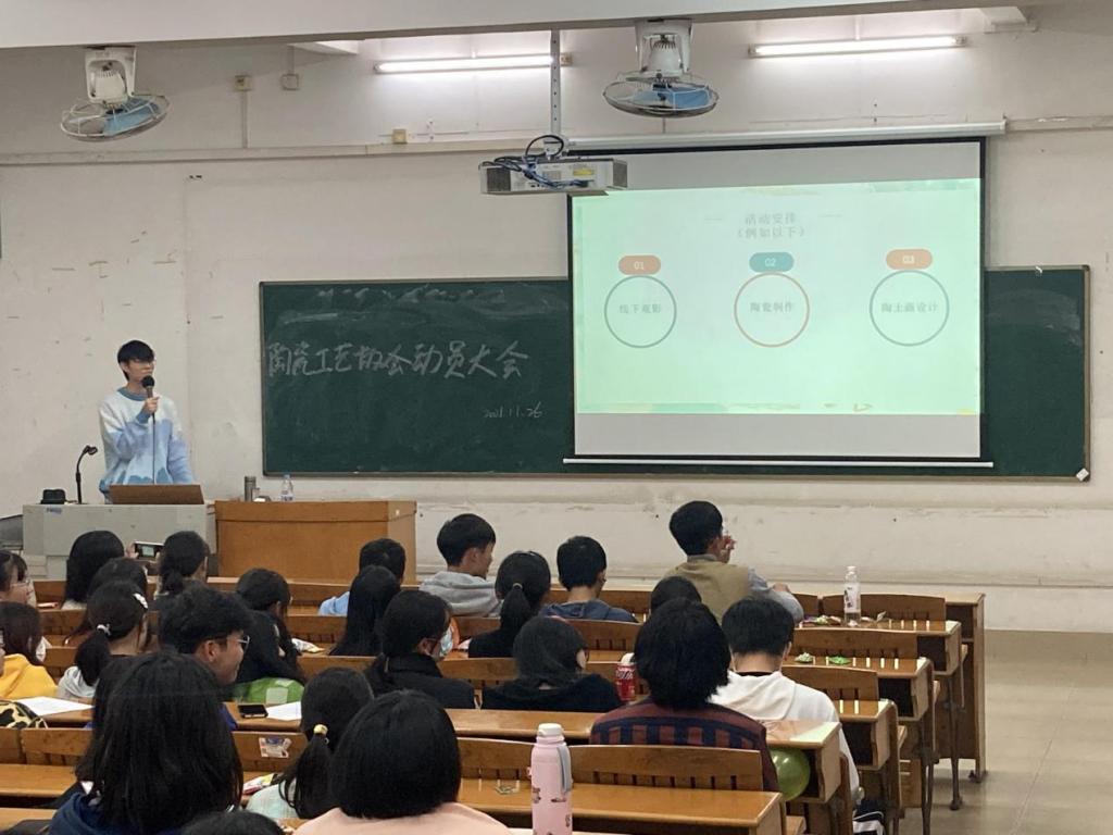 接下来,向新成员展示了陶瓷协会近年来的成果,欣赏之余,鼓励大家要热爱专业,学习精湛的陶瓷技艺,今后可以有属于自己的陶瓷工艺品。此外,也向大家介绍了协会的工作安排,让大家对接下来的工作有明确的规划。
