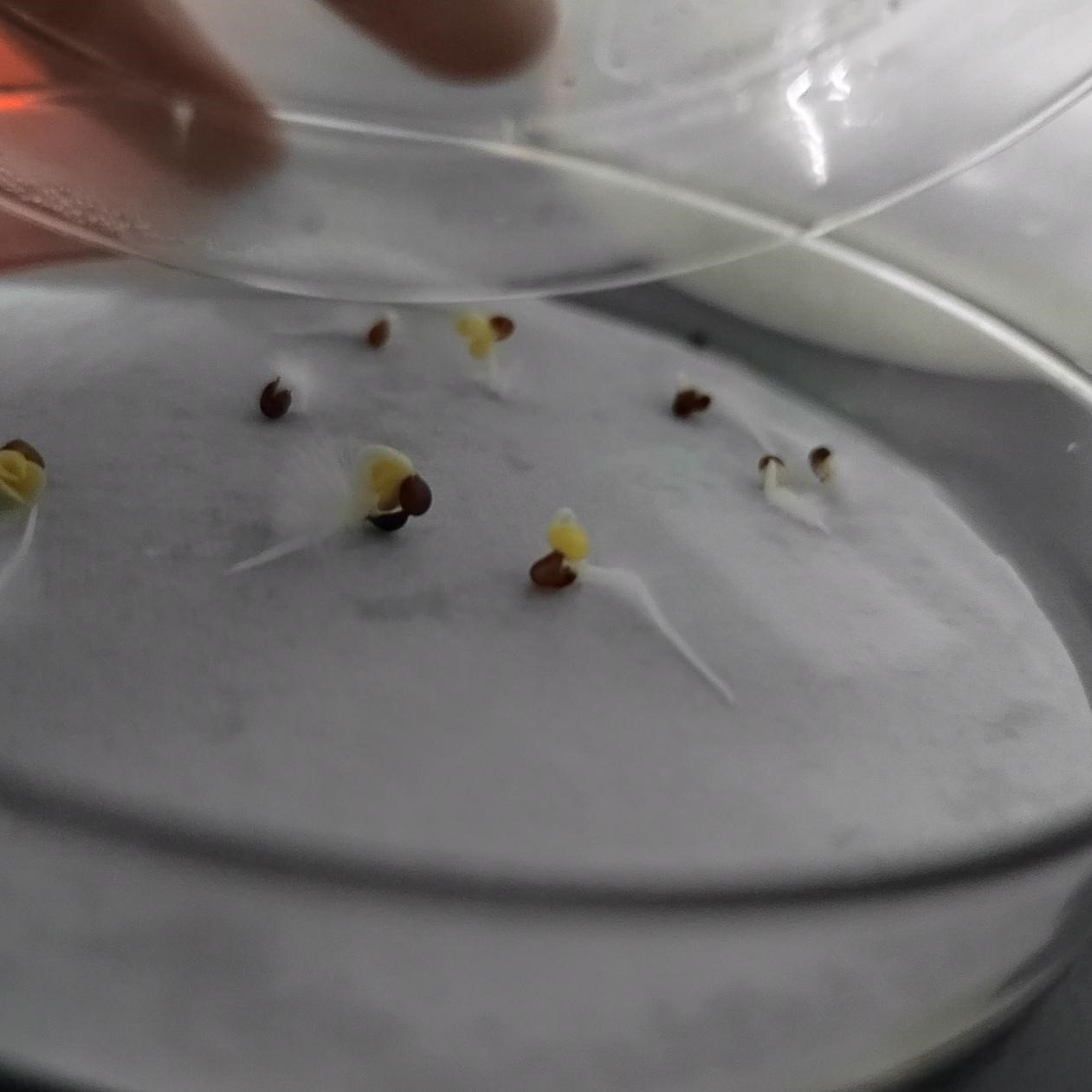 我们把烘干的渣土,泥炭土和稻壳按照一定的比例来混合。混合后,我们分别称量不同质量的混合土来进行种子发芽率实验。我们把每一种不同的混合土按照每一份50g来进行一小时搅拌和一小时的静置后,我们再进行过滤。我们每一组设置三个实验样品。我们把种子放进水里进行一分钟的浸泡,把浮在水面上的种子挑走,把沉底的种子捞起来。每个实验样品都放置10个种子,每个实验样品都放置5ml过滤后的混合土滤液。把装好滤液和种子的培养皿统一放进培养箱中,等待四十八小时的结果。