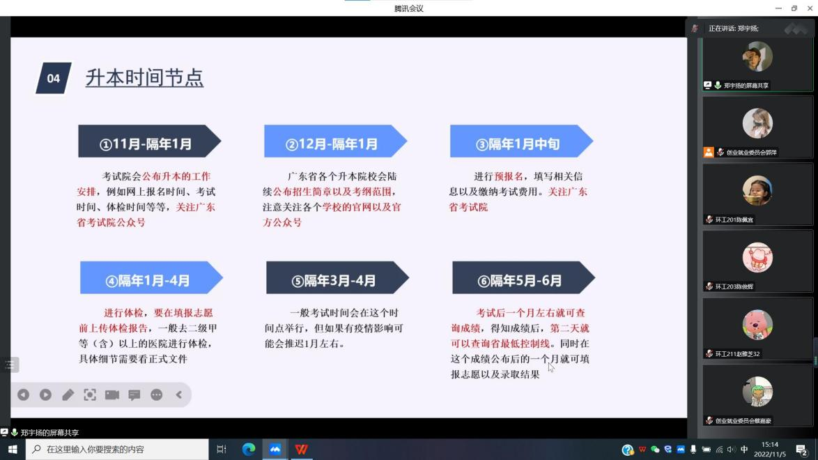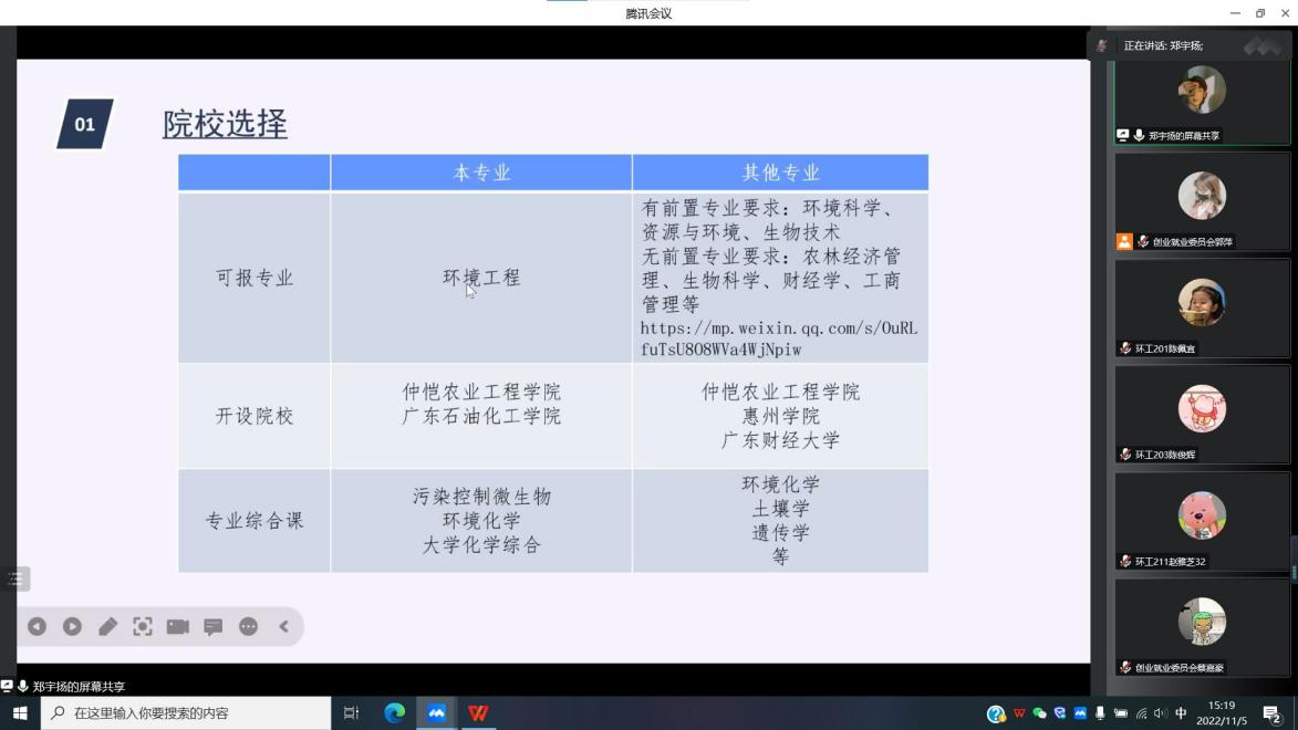 为了让同学们更清晰升学目标,获取更多的升本经验,生态环境技术学院邀请了环境工程技术专业升本成功的郑宇扬师兄和卓容君师姐回来分享成功经验,本次分享会于11月5日15:00在腾讯会议进行。