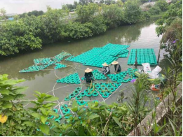 行动第 3、4 和 5 天,浮岛下水,曝气机下水,制作水生态浮岛和喷泉!