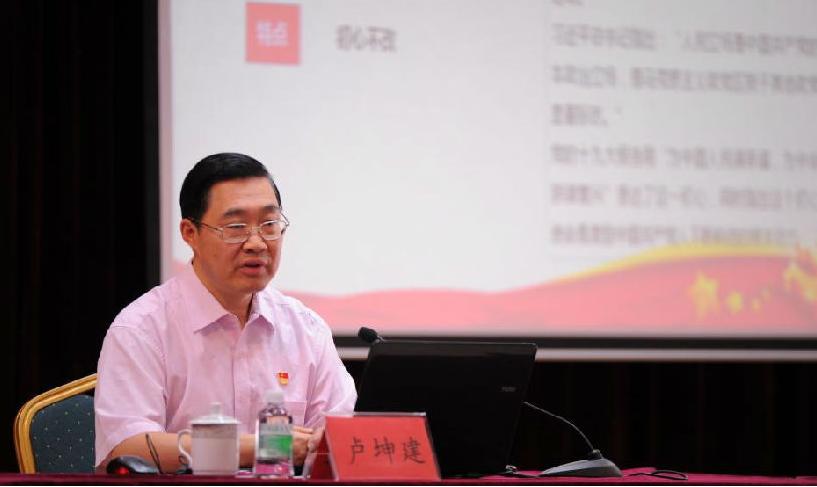 10月30日上午,校长卢坤建开讲主题教育专题党课。全体校领导、师生党员到场聆听,省委巡回指导第十三组成员邱小芳出席。