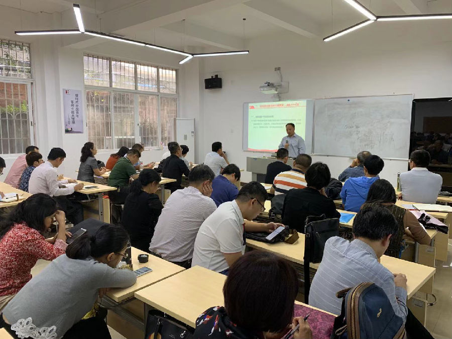10月29日下午,按照学校主题教育工作领导小组的统一安排,生态环境技术学院全体教工党员参加主题教育专题党课学习活动,本次党课由学校党委委员、副校长廖俊杰同志主讲,主讲的题目是“不忘初心、牢记使命”主题教育专题党课,廖俊杰在党课上分享了自己学习党的理论知识的经验,讲述了以党的建设为统领,如何开展高职教育教学教改工作,并进一步阐述了在未来学校双高建设过程中,如何加强党的建设等一系列问题。