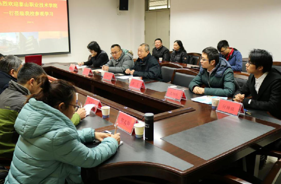 2018年12月13日上午,泰山职业技术学院生物工程系主任曾晓东、副主任孙国波等一行7人前来我校生态环境技术学院和食品与生物技术学院学习参访。重点是学习园林、食品营养检验检测的专业建设、校企合作、产教融合和技能大赛训练情况。我院党总支书记孙林山、副院长张堃接待了来访的客人。参与接待的还有食品与生物工程学院党总支书记揭广川,以及园林和食品营养检验检测专业的老师。