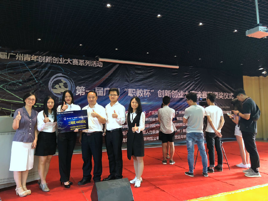 2018年5月5日,第一届广州“职教杯”创新创业大赛决赛在广东技术师范学院举行。在环保专业秦文淑和王巧云两位老师指导下,生态环境学院“青稚环境创新研发工作室”的创新创业项目“金刚采水器的创新研发与销售”(项目负责人:林雅静,麦小川和黄伟杰)从100多个参赛项目中,经过初赛,半决赛,一路过关斩将。历时近两个月,最终在决赛场上,从21个项目中脱颖而出,斩获二等奖殊荣,并获46000元奖励,奖励包括3000元现金奖,价值29800元创业大礼包和价值13200元半年免租期孵化场地使用权。
