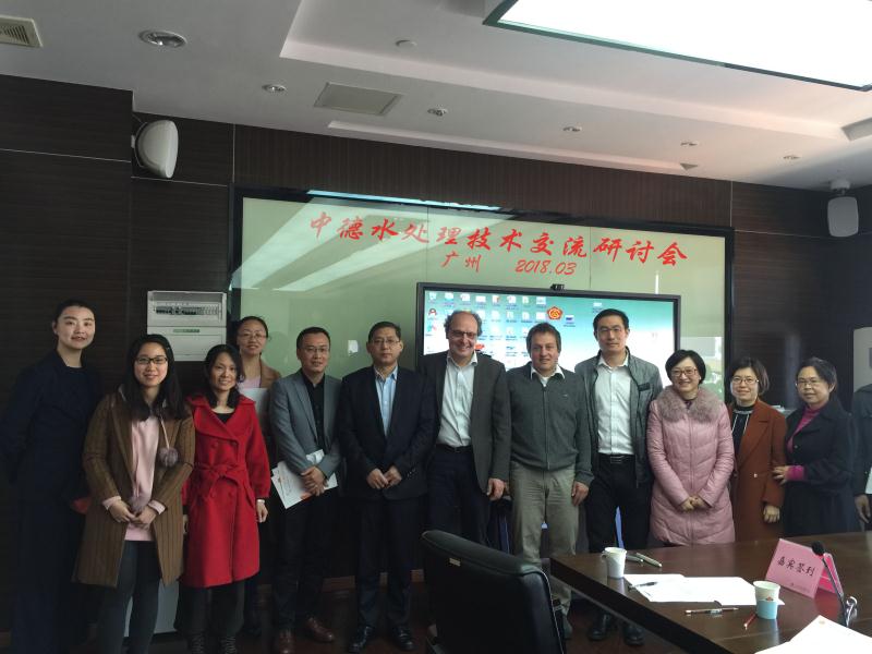 2018年3月9日上午,在广州交易所集团大楼举办了中德水处理技术交流会,德方出席会议的有德国燃气和给水协会(DVGW)的Macro Scheurer博士、Volker Schlitt高级工程师、斯图加特大学Harald Schoenberger博士。中方出席会议的有瀚蓝环境股份有限公司、广州技术产权交易中心、中交四航工程研究院有限公司、沈阳自动化所华南分所、广州合昕环境科技有限公司等上市公司及科研院所,我校生态环境技术学院环保教研室五位老师在秦文淑主任、张堃副主任的带领下也出席了此次会议,本次会议就河道水环境治理技术、水质自动在线监测技术、工业废水处理技术、城市污水处理工艺等展开了深入的交流。我校环保教研室的老师就印染、造纸废水处理技术与德方进行了进一步的交流,双方就人才联合培养、科研合作、技术推广、交流互访等事宜进行了洽谈。希望通过此次交流,我们与德方能建立长期的合作伙伴关系,共同促进我校在轻工业废水处理领域的技术实力、为国家培养出更多高质量的应用技术性人才。
