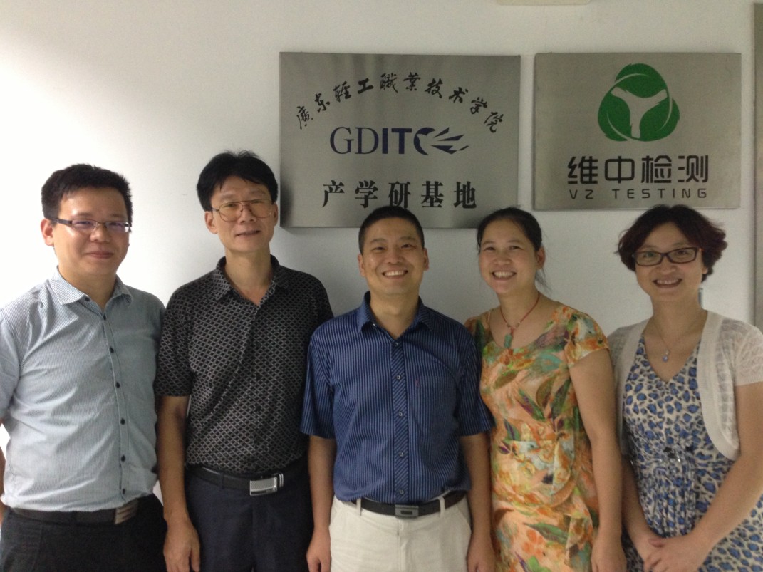 6月26日下午,环境工程系王汉道主任和环保教研室秦文淑老师一行前往佛山翰天环保科技城维中检测有限公司,与公司总经理田雪梅共同为环境监测与治理技术专业维中检测产学研基地揭牌。
