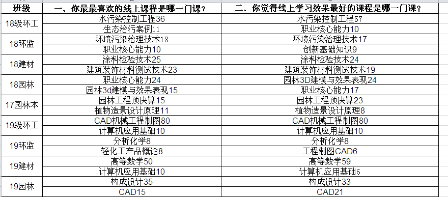 我院也对线上教学做了调查问卷,让同学反馈了线上教学的不足和优势,选出了线上课程中最喜欢的和学习效果最好的两门课。