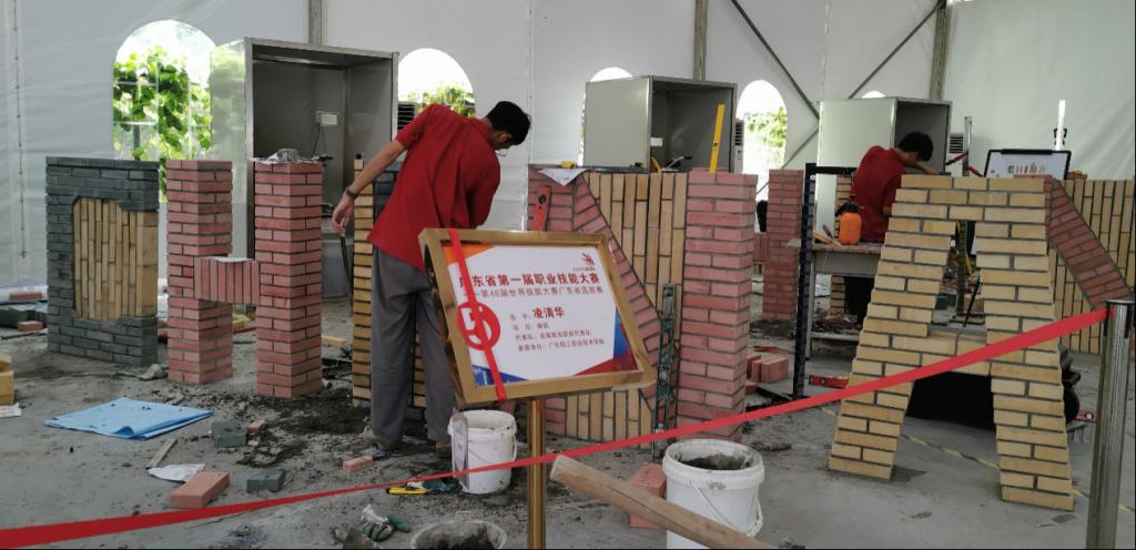 本次大赛凌清华的参赛内容是“CHINA”字样的墙面,为5个模块,砖量约为560块。凌清华同学在赛前认真备战,在史建岚老师的精心指导下,从行业实际需求出发,按照难度较高的清水砖墙砌筑标准展开训练。对于高强度的训练凌清华同学也毫无怨言,刻苦学习,坚持训练。训练的过程得到了学院领导和学校后勤部门的大力支持。