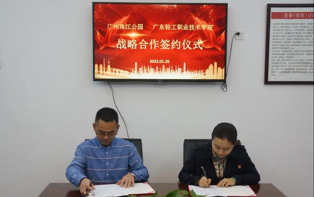2022年1月26日,广州珠江公园与广东轻工职业技术学院战略合作协议签约仪式在珠江公园举办。在广州市林业和园林局的指导下,“公园+高校”联盟合作、共同发展的战略模式,正式在广州珠江公园落地开花。