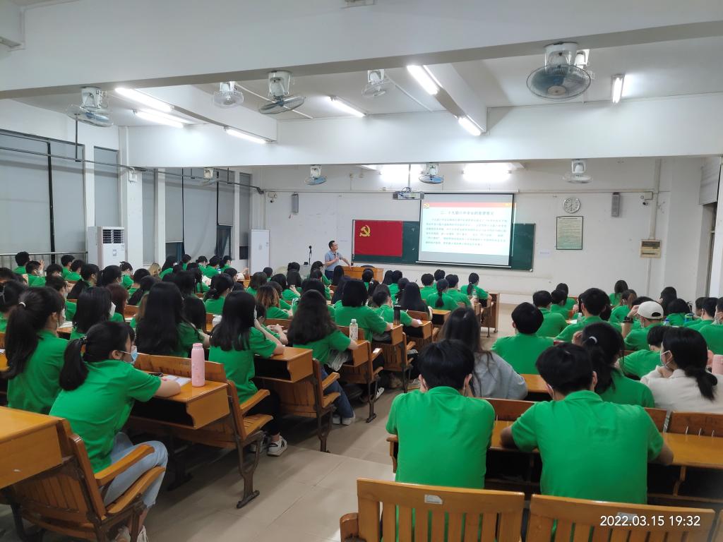 黄华枝在南海北校区教学楼2110教室,以“深入学习党的十九届六中全会精神,践行生态文明理念”为主题,为我院20级学生党员和入党积极分子讲课,主要讲授党的十九届六中全会的重要意义、党的十九届六中全会精神的主要内容以及如何践行生态文明理念三个方面的内容,带领同学们深入学习《决议》中有关生态文明建设的论述,要求大家认真学习专业知识、充分发挥专业技能,努力成长为能担当生态文明建设大任的合格建设者和可靠接班人。