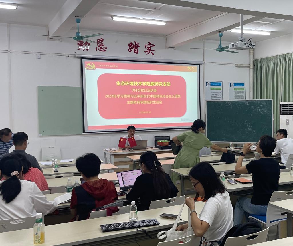 2023年9月5日,学院教师党支部在第四实训楼A404开展党日活动暨2023年学习贯彻习近平新时代中国特色社会主义思想主题教育专题组织生活会,党总支书记贺爱东和教师党员参加会议。