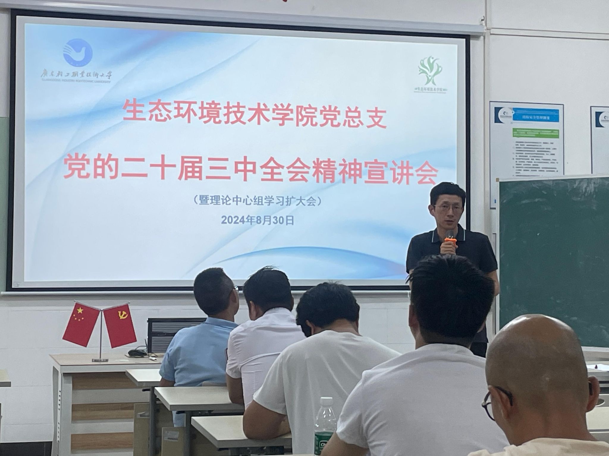 8月30日下午,学院在第四实训楼A404室召开新学期全院大会暨党的二十届三中全会精神宣讲会,全体教工参加。